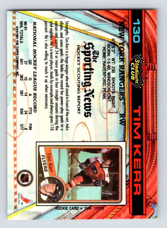 1991-92 Topps Stadium Club #130 Tim Kerr NM-MT New York Rangers Hockey Card