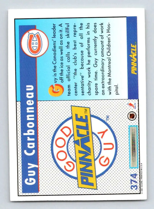 1991-92 Pinnacle #374 Guy Carbonneau GG NM-MT Montreal Canadiens Hockey Card