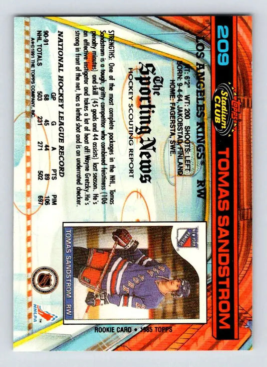 1991-92 Topps Stadium Club #209 Tomas Sandstrom NM-MT Los Angeles Kings Hockey Card