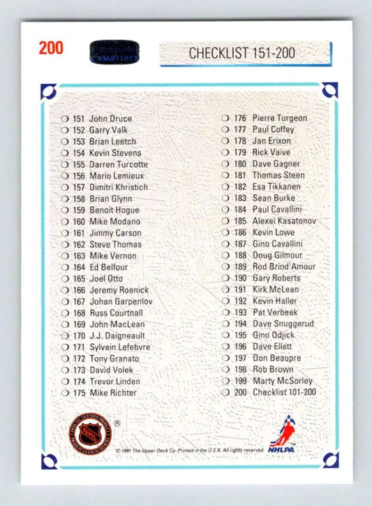 1991-92 Upper Deck #200 Checklist 101-200 NM-MT Hockey Card