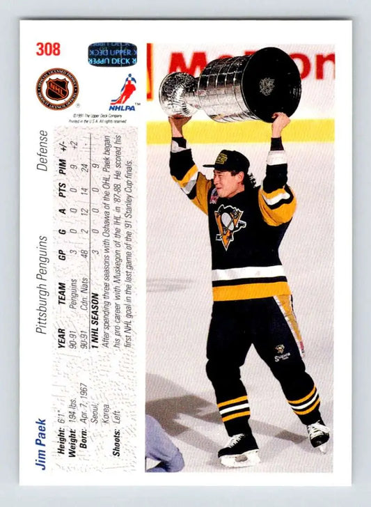 1991-92 Upper Deck #308 Jim Paek NM-MT RC Rookie Pittsburgh Penguins Hockey Card