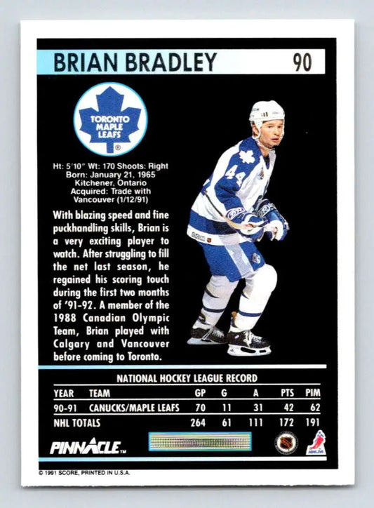 1991-92 Pinnacle #90 Brian Bradley NM-MT Toronto Maple Leafs Hockey Card