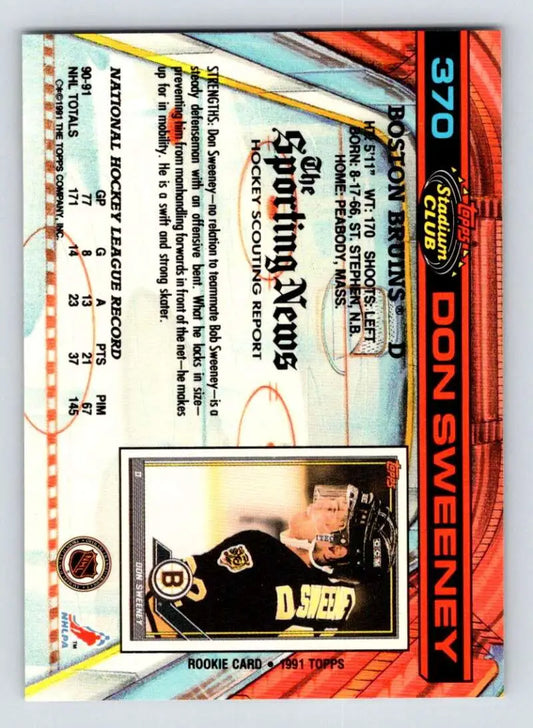 1991-92 Topps Stadium Club #370 Don Sweeney NM-MT Boston Bruins Hockey Card
