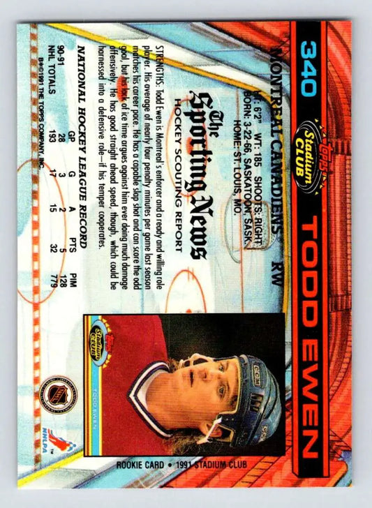 1991-92 Topps Stadium Club #340 Todd Ewen NM-MT Montreal Canadiens Hockey Card