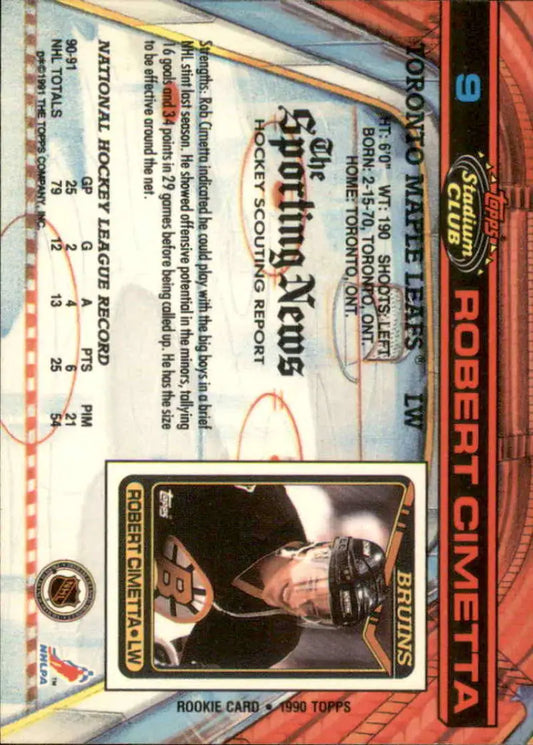 1991-92 Topps Stadium Club #9 Rob Cimetta NM-MT Toronto Maple Leafs Hockey Card