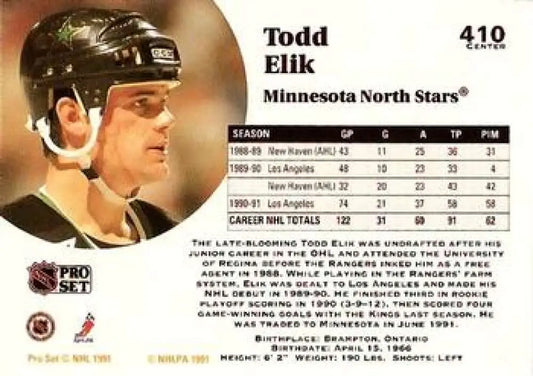 1991-92 Pro Set #410 Todd Elik NM-MT Minnesota North Stars Hockey Card