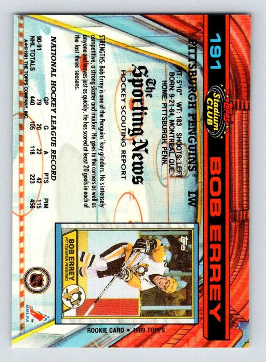 1991-92 Topps Stadium Club #191 Bob Errey NM-MT Pittsburgh Penguins Hockey Card