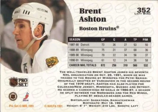 1991-92 Pro Set #352 Brent Ashton NM-MT Boston Bruins Hockey Card