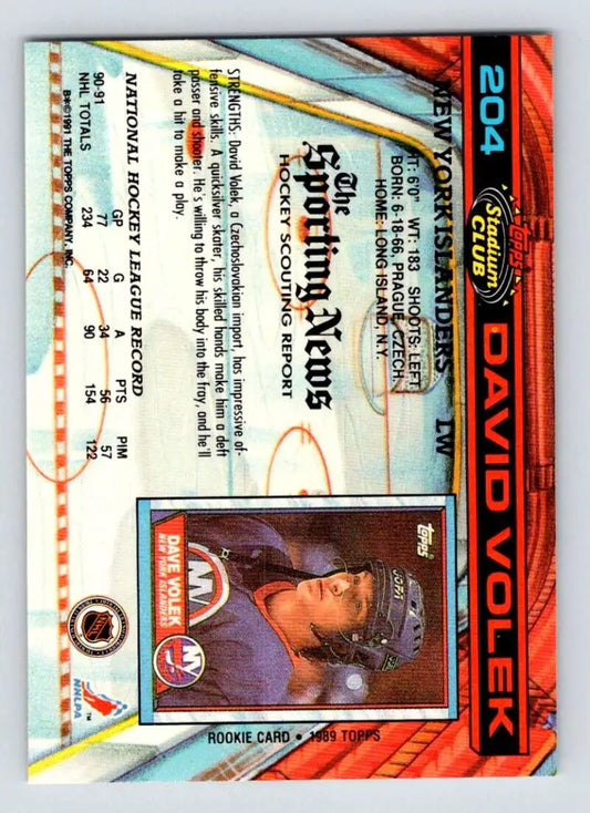 1991-92 Topps Stadium Club #204 David Volek NM-MT New York Islanders Hockey Card