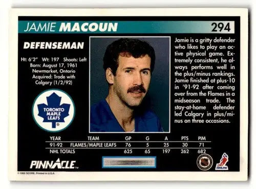 1992 Pinnacle #294 Jamie Macoun Maple Leafs Hockey Cards EX/NM ID:57770