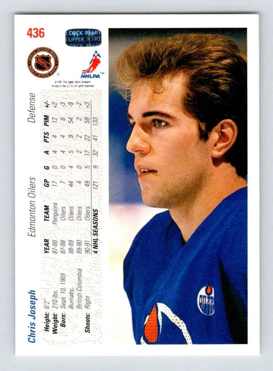 1991-92 Upper Deck #436 Chris Joseph NM-MT Edmonton Oilers Hockey Card