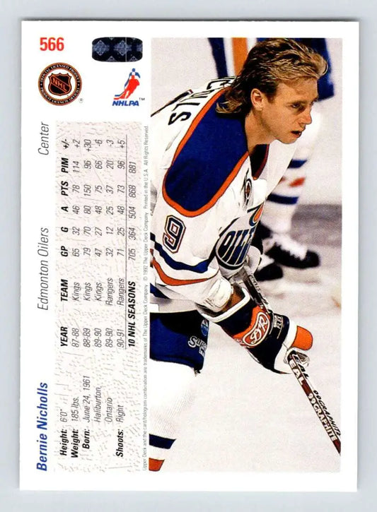 1991-92 Upper Deck #566 Bernie Nicholls NM-MT Edmonton Oilers Hockey Card