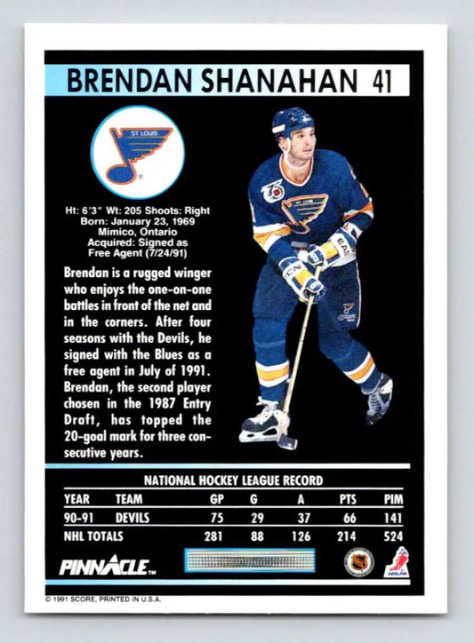 1991-92 Pinnacle #41 Brendan Shanahan NM-MT St. Louis Blues Hockey Card