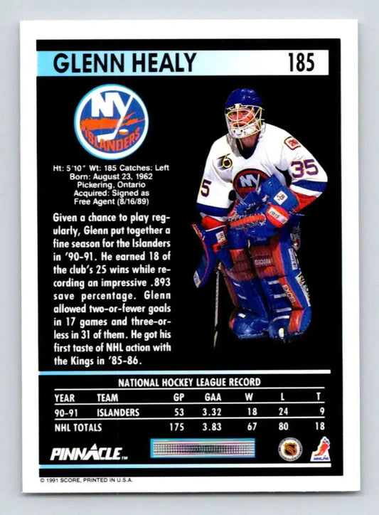 1991-92 Pinnacle #185 Glenn Healy NM-MT New York Islanders Hockey Card