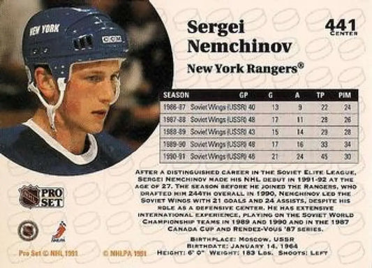1991-92 Pro Set #441 Sergei Nemchinov NM-MT New York Rangers Hockey Card