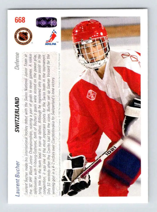 1991-92 Upper Deck #668 Laurent Bucher NM-MT RC Rookie Hockey Card