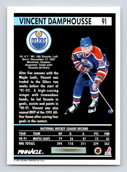 1991-92 Pinnacle #91 Vincent Damphousse NM-MT Edmonton Oilers Hockey Card