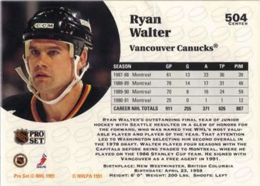 1991-92 Pro Set #504 Ryan Walter NM-MT Vancouver Canucks Hockey Card