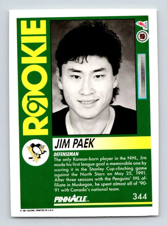 1991-92 Pinnacle #344 Jim Paek NM-MT RC Rookie Pittsburgh Penguins Hockey Card