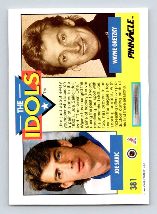 1991-92 Pinnacle #381 Joe Sakic/Wayne Gretzky NM-MT Quebec Nordiques Hockey Card