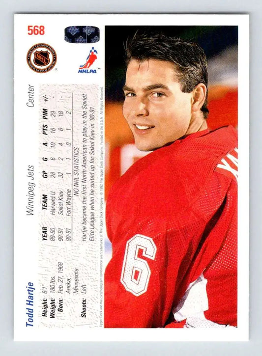 1991-92 Upper Deck #568 Todd Hartje NM-MT RC Rookie Winnipeg Jets Hockey Card