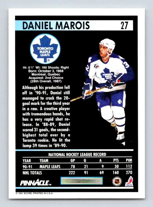 1991-92 Pinnacle #27 Daniel Marois NM-MT Toronto Maple Leafs Hockey Card