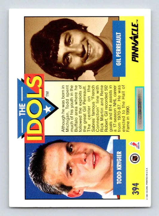 1991-92 Pinnacle #394 Todd Krygier/Gilbert Perrault NM-MT Washington Capitals Hockey Card