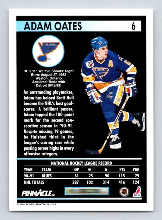 1991-92 Pinnacle #6 Adam Oates NM-MT St. Louis Blues Hockey Card