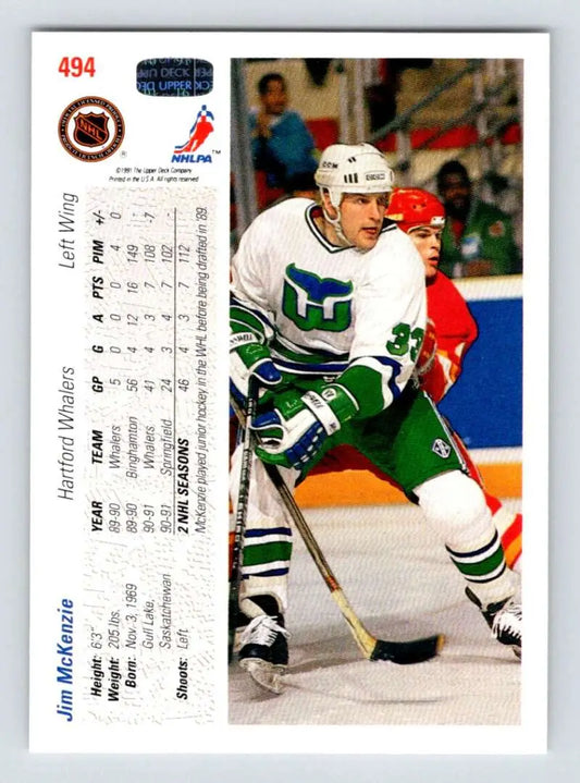 1991-92 Upper Deck #494 Jim McKenzie NM-MT Hartford Whalers Hockey Card