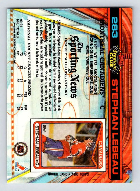 1991-92 Topps Stadium Club #283 Stephan Lebeau NM-MT Montreal Canadiens Hockey Card