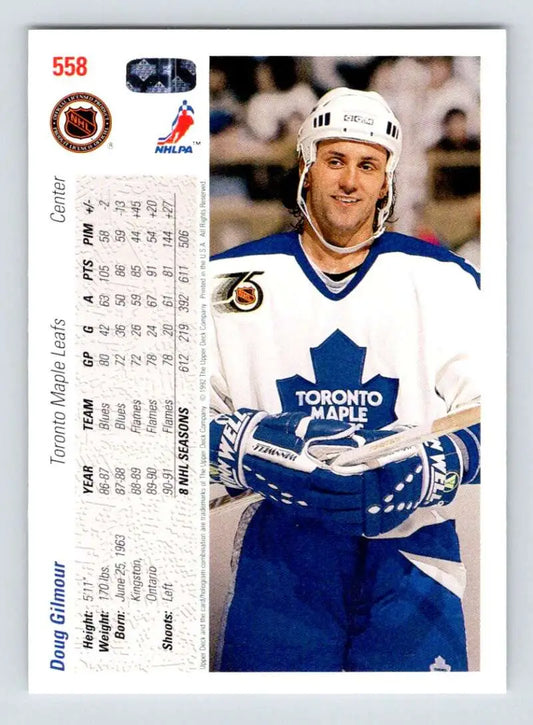 1991-92 Upper Deck #558 Doug Gilmour NM-MT Toronto Maple Leafs Hockey Card