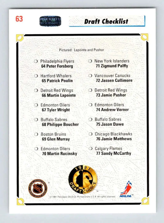 1991-92 Upper Deck #63 Martin Lapointe/Jamie Pushor NM-MT Detroit Red Wings Hockey Card