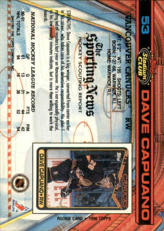 1991-92 Topps Stadium Club #53 Dave Capuano NM-MT Vancouver Canucks Hockey Card