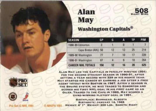 1991-92 Pro Set #508 Alan May NM-MT Washington Capitals Hockey Card