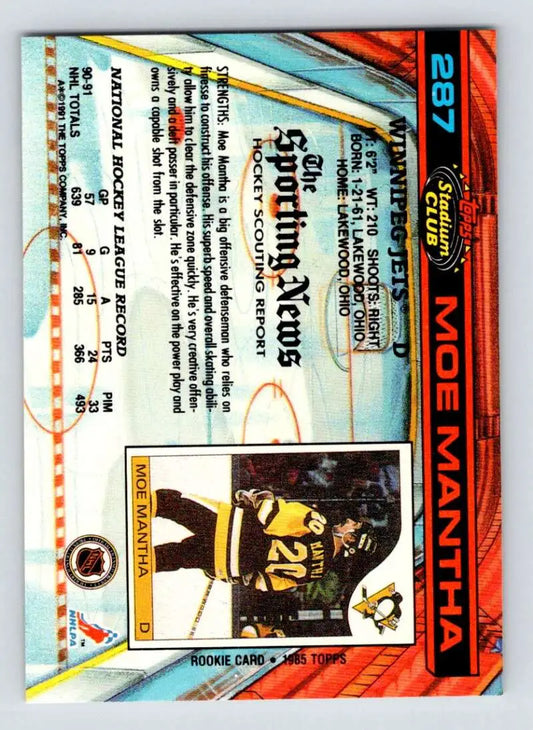 1991-92 Topps Stadium Club #287 Moe Mantha NM-MT Winnipeg Jets Hockey Card