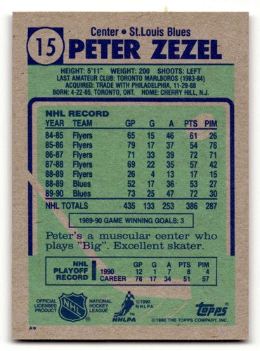 1990 Topps #15 Peter Zezel St. Louis Blues Hockey Cards NM Near Mint ID:55529