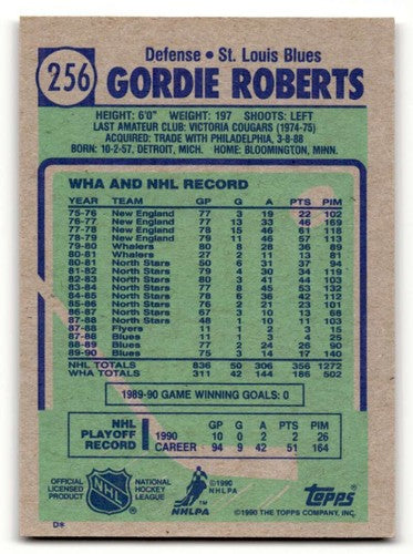 1990 Topps #256 Gordie Roberts St. Louis Blues Hockey Cards NM Near ID:55537