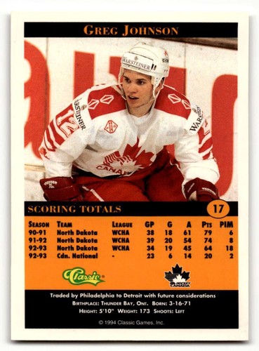 1994 Classic Pro Prospects #17 Greg Johnson Canada Hockey Cards NM N ID:55506
