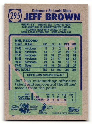 1990 Topps #295 Jeff Brown St. Louis Blues Hockey Cards NM Near Mint ID:55528