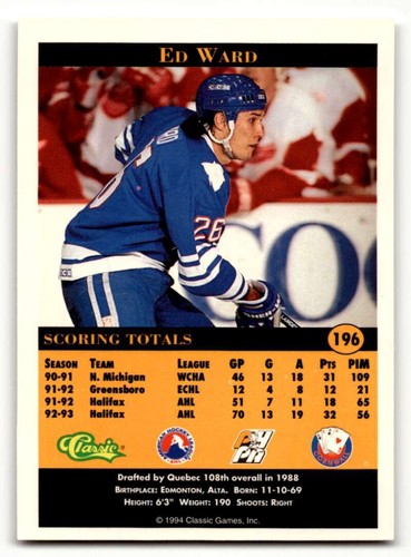 1994 Classic Pro Prospects #196 Ed Ward Cornwall Aces Hockey Cards N ID:55509