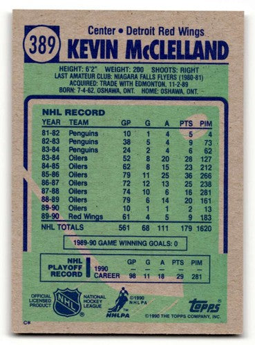 1990 Topps #389 Kevin McClelland Detroit Red Wings Hockey Cards NM N ID:55519