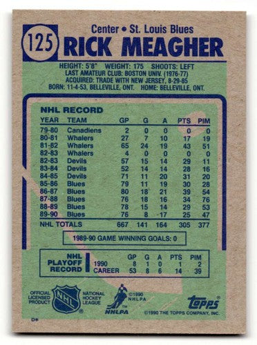 1990 Topps #125 Rick Meagher St. Louis Blues Hockey Cards NM Near Mi ID:55522