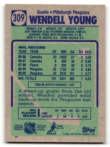 1990 Topps #309 Wendell Young Pittsburgh Penguins Hockey Cards NM Ne ID:55536
