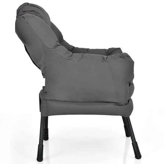 Upholstered Modern Cushioned Accent Chair with Side Pocket in Grey