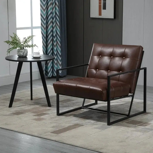 Retro Tufted Faux Leather Metal Frame Accent Chair - Brown