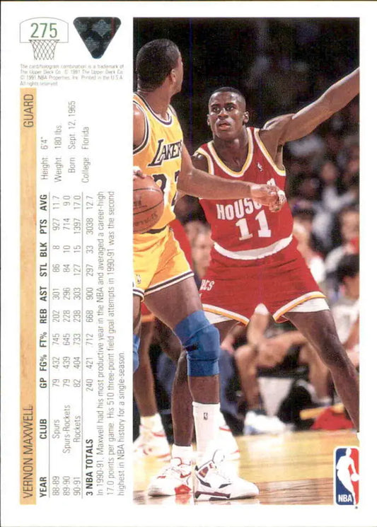 1991-92 Upper Deck #275 Vernon Maxwell NM-MT Houston Rockets Basketball Card