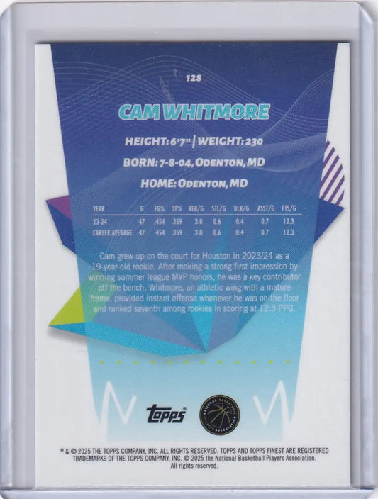 2024-25 Finest Basketball Sky Blue #128 Cam Whitmore - Houston Rockets
