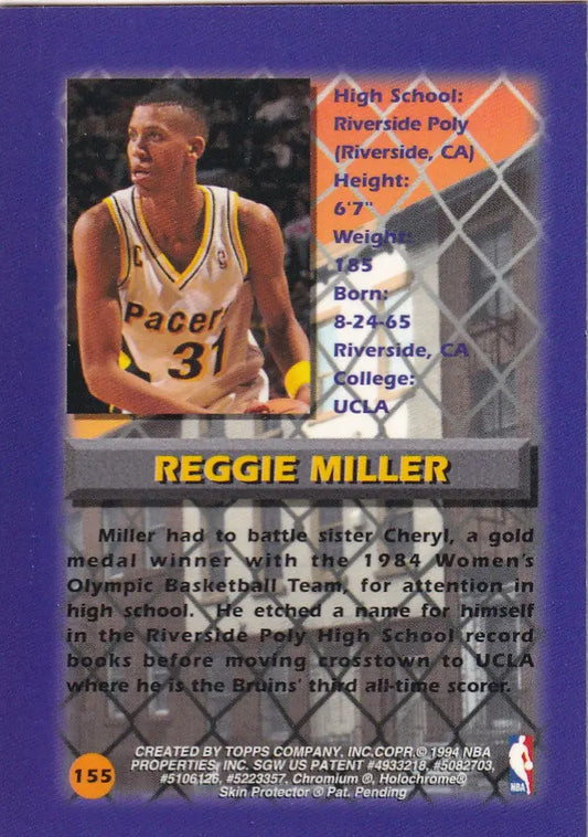 1994 TOPPS FINEST #155 REGGIE MILLER- INDIANA PACERS