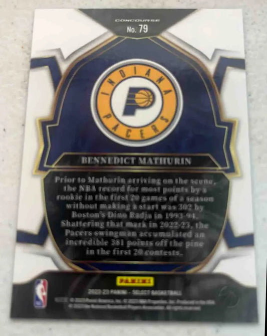 2022 Panini Select Bennedict Mathurin Blue (Retail ) #79 RC Concourse Pacers