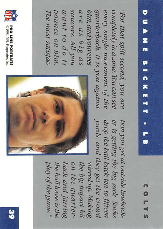 1991 Pro Line Portraits #39 Duane Bickett EX-NM Indianapolis Colts Football Card